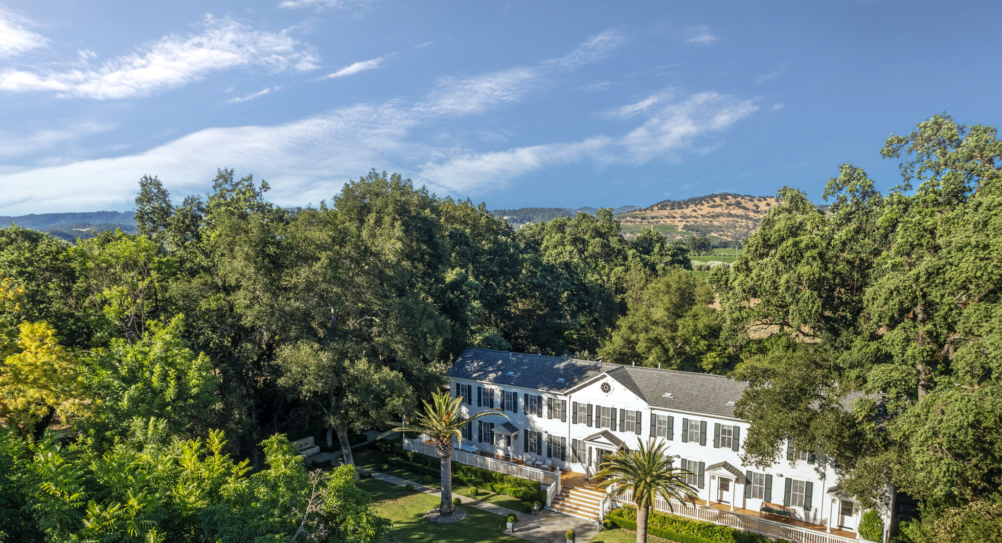 Tusitala is a six-bedroom private residence in Napa Valley set among established vineyards and mature gardens. Offered by private inquiry, the home provides a calm residential setting suited to monthly and extended stays.